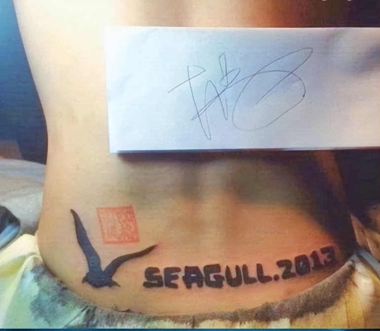 再比如他后腰处的海鸥图案,传奇是挑升为粉丝纹的,因为他的粉丝应援名就叫“海鸥”。