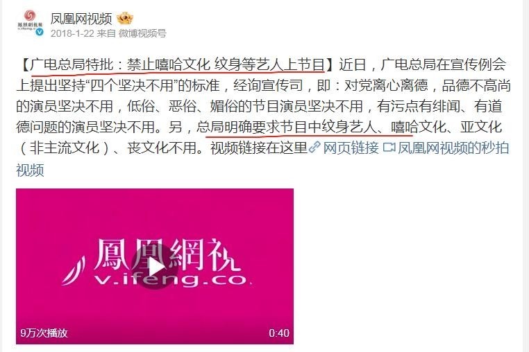 其实早在7年前,广电就曾传出过“遏抑有纹身艺东谈主上镜”的风声,这也证明官方对艺东谈主纹身的格调并不积极。