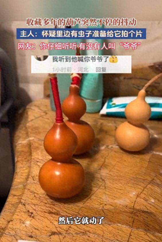 11月18日(采访),辽宁沈阳,保藏多年的葫芦片刻延续的抖动,主东谈主: 怀疑里边有虫子准备给它拍个片,网友:你仔细听听,有莫得东谈主叫“爷爷”。(阳信融媒)
